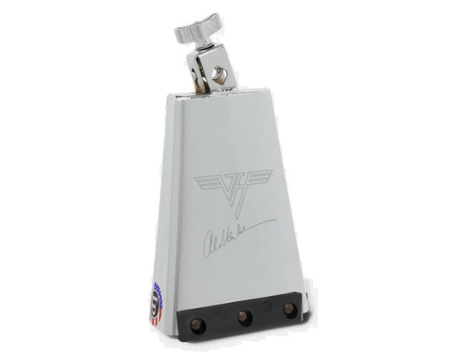 Introducing the Alex Van Halen Signature Cowbell from Latin Percussion. Based on LP's classic Bongo Cowbell, this American-made and mountable bell is embossed with both Alex's signature and the iconic Van Halen logo. Additional features include a Jenigor Ridge Rider bar for dampening and durability along with a patented, self-aligning eye-bolt that mounts to any 3/8" to 1/2" diameter rod. This 8-inch chrome-plated cowbell pumps out high pitch with dry overtones, which is great for punching accents into any big rock groove. *