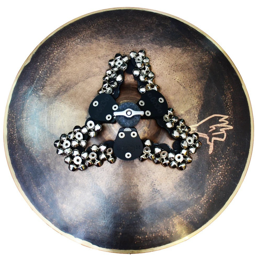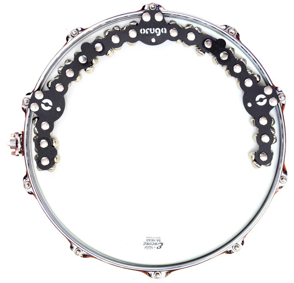 The ORUGA Large Jingle uses strong magnets to naturally attach to any standard steel drum hoop. Its floating jingle system delivers a unified response when striking the drumhead, without affecting the drum’s original tone.