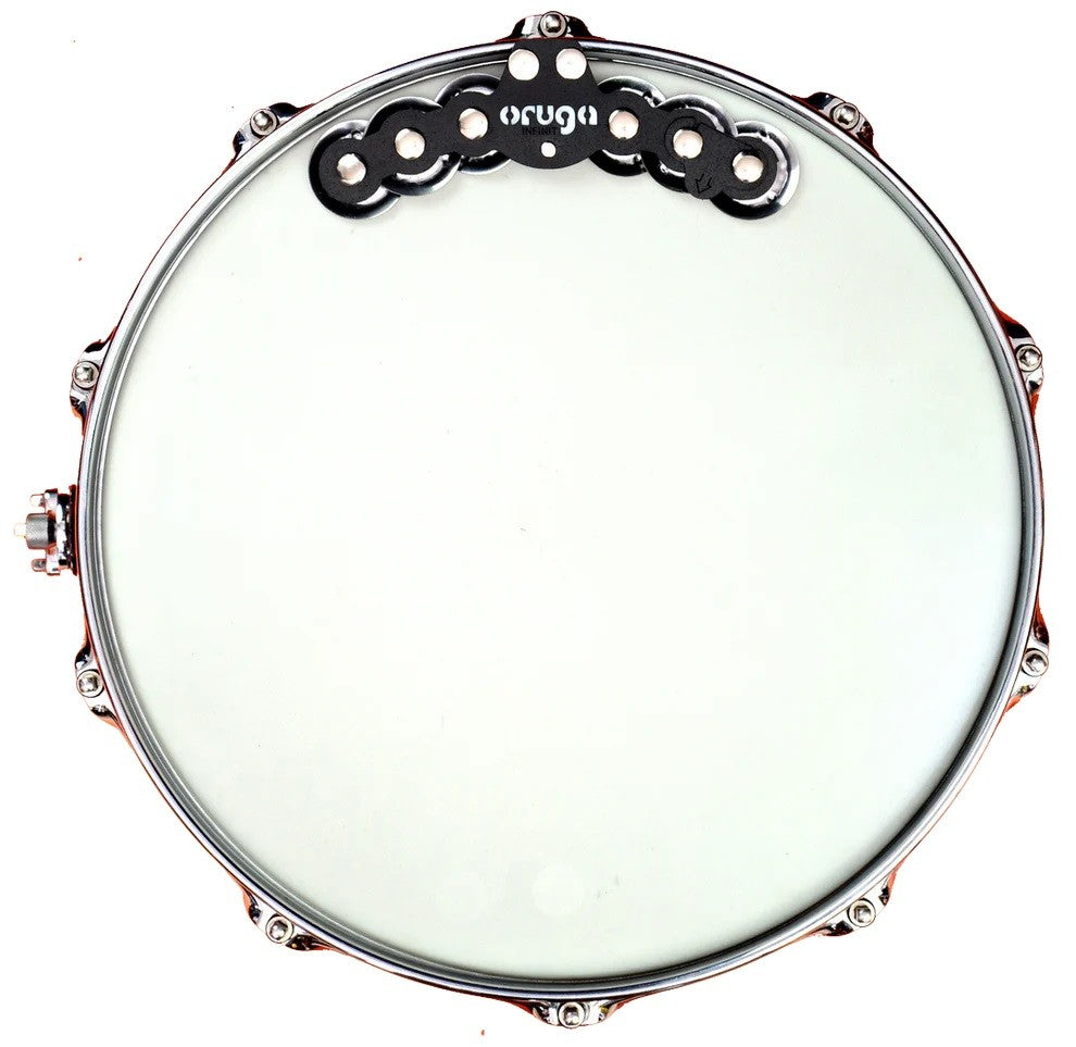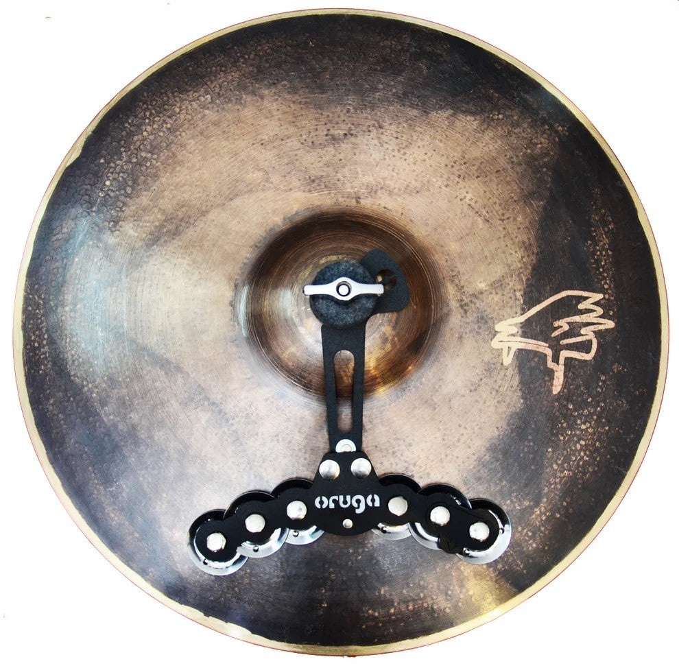 Floating effects system with magnetic attachment and adapter for hi-hat or cymbal tilters. Its strong magnet allows it to naturally attach to any standard steel hoop. The floating jingle system produces a responsive, integrated sound when striking the drumhead—without altering the natural tone of the drum.