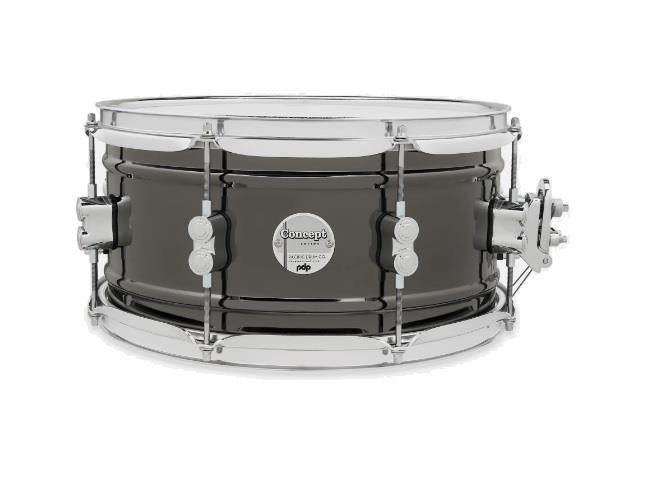 The Concept Series Black-Nickel-Over Steel Snares offer drummers a brash, sleek-looking snare drum with a lower pitch, dynamic attack, and bright resonance that cut through any mix as a main or side snare. These drums feature a 1mm-thick, dual-beaded, rolled-steel shell, plated in a mirror-like, black nickel finish. Each of these drums is fitted with PDP's dual-turret lugs, DW MAG throw-off and True-Pitch tension rods, and world-class drum heads from Remo. The snare wires are fully-chromed, with carbon steel coils and brass end plates, for exceptional texture and control. The Black Nickel Over Steel Snares are offered in variety of sizes to help you dial in your specific sound.