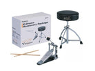This handy drum accessory package is recommended for entry-level drummers, as it enables them to play their V-Drums right out of the box. Components include a pair of hickory-made drumsticks sporting the V-Drums logo, a kick pedal with new embossed Roland logo footplate, and a drum throne with double-braced tripod for years of reliable use.